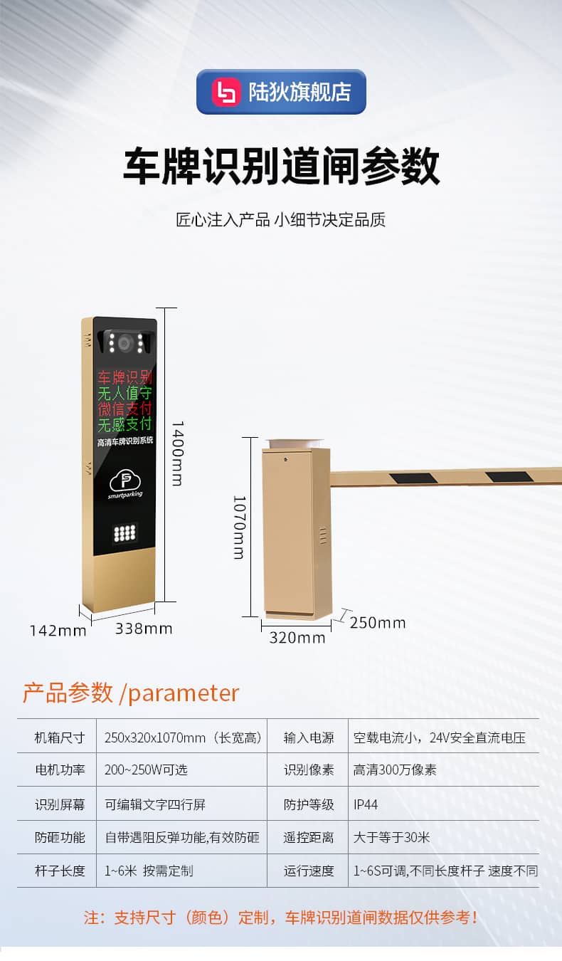 车牌识别L款四行屏-金色